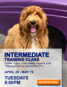 This Training Class is the next step after a dog graduates from Bark-A-Bout’s Beginner Training Class.