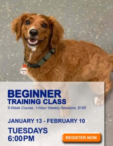 Beginner Training Classes are tailored to dogs of any age. Bark-A-Bout’s Intermediate Training Class is the next class following graduation of this Beginner Training Class.