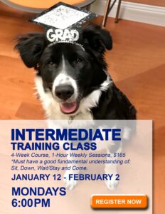 This Training Class is the next step after a dog graduates from Bark-A-Bout’s Beginner Training Class.