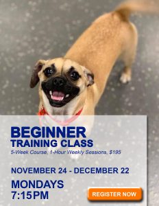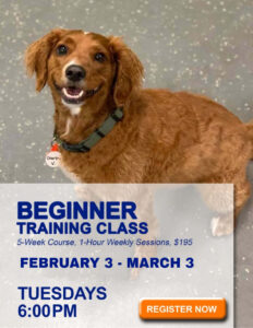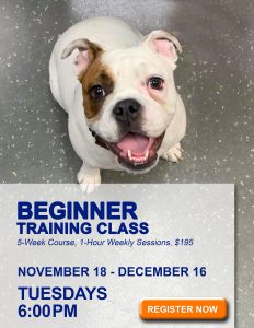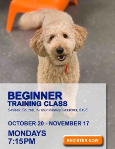 Beginner Training Classes are tailored to dogs of any age. Bark-A-Bout’s Intermediate Training Class is the next class following graduation of this Beginner Training Class.